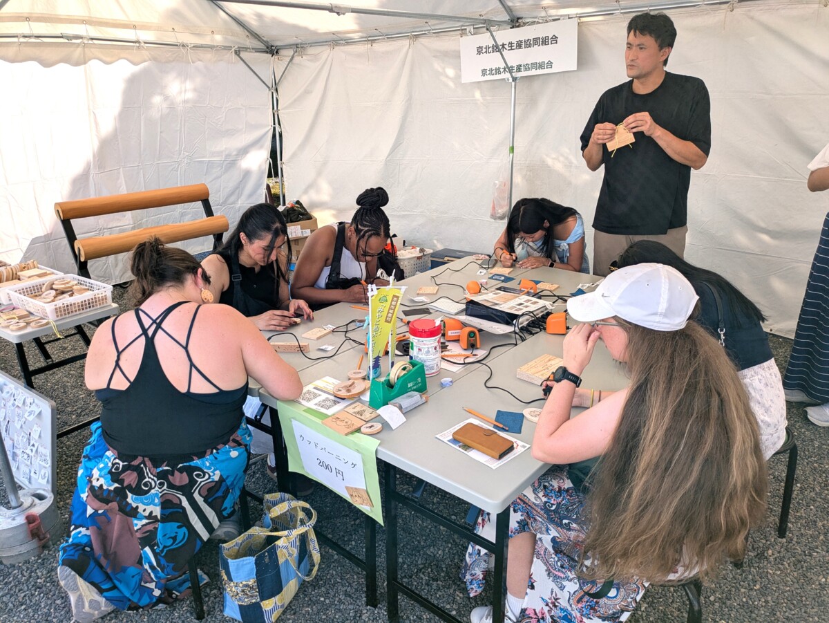 木の文化の体験in二条城 2025.10.07 イベント 今年も京都市主催のイベント『KYOTOWOODEXHIBITION2025』に参加させていただきました。 今回もウッドバーニング体験教室を開いたのですが、今年は観光スポットでもある二条城での開催ということもあり参加者のほとんどが海外からのお客様でした。「となりのトトロ」や「ちいかわ」など日本のアニメや舞妓さんや五重塔など京都らしい絵柄などをバーニングされるかたが多くみられました。 旅のよい記念になったのではと思います(^^)